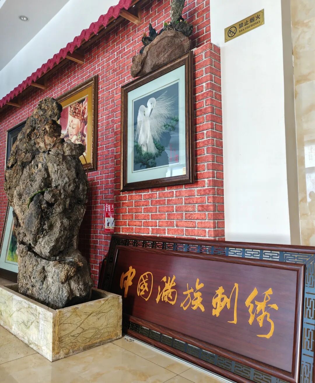 19日下午的最后一站是刘雅梅满绣非遗基地。作为中国非物质文化遗产“满族刺绣”传承人,刘雅梅在县委县政府的大力支持下成立黑龙江满绣艺术研究中心、满绣大师工作室等,率先实施“文化产业脱贫攻坚项目”,开办满绣免费培训班,共培养3000多名满绣从业人员。特别是把残疾人员、脱贫群众、留守妇女等人员培养成能自食其力的劳动者。目前,克东满绣作品已远销全国各地,并出口美国、西班牙、菲律宾等地。