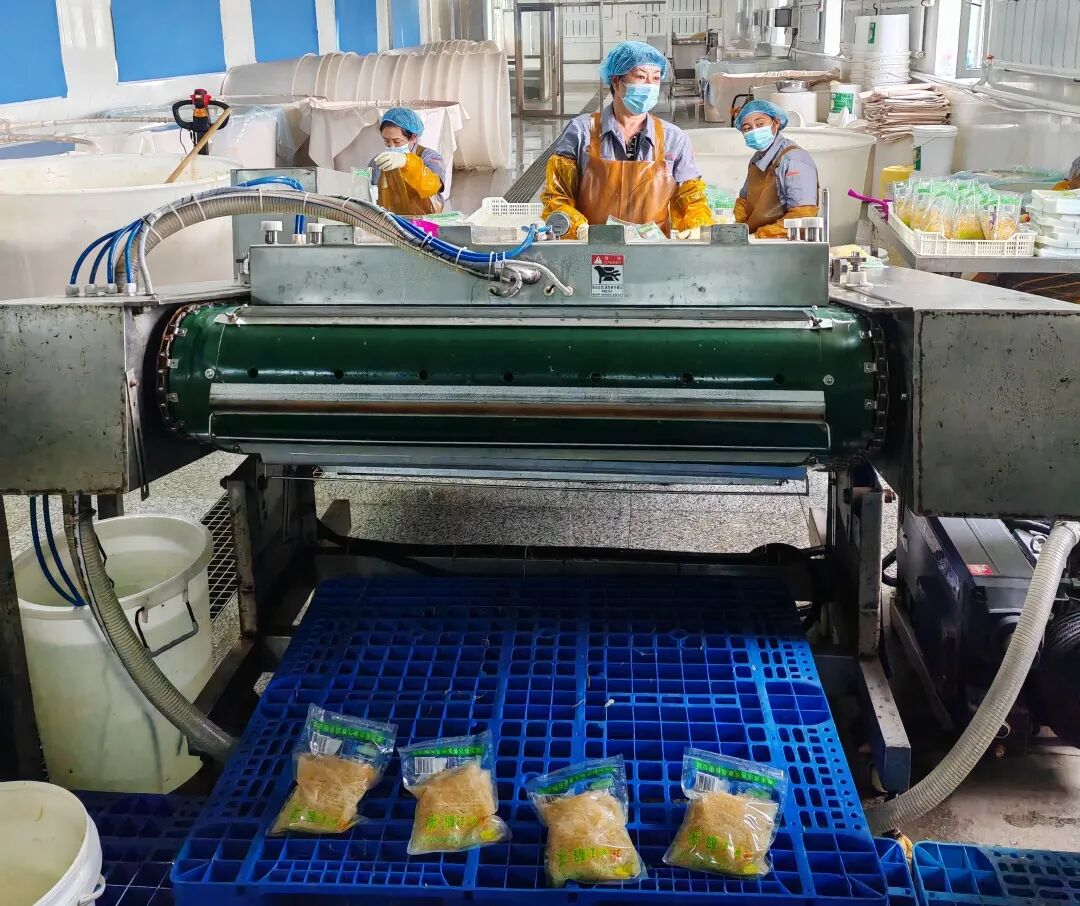 鹤舞龙乡队在昌盛乡东龙村“丝如玉”酸菜加工厂了解到,作为东龙村村办企业,酸菜厂年产量达1600余吨,不仅畅销附近区县,还通过快手、抖音等渠道销售全国各地,吸引近40名村民长期务工,工人月收入可达4000元左右。村办企业逐渐带领村民走上“致富路”,促进乡村特色小产业链蓬勃发展。