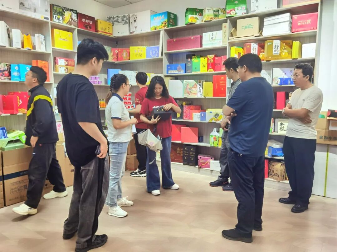 ▲调研团在玖墨文化传媒有限公司包装盒展品室参观