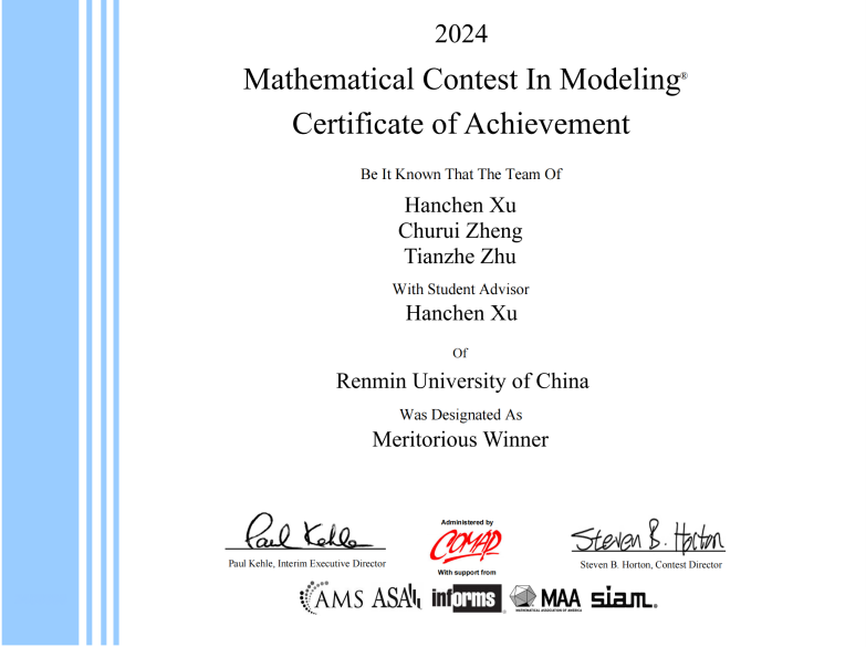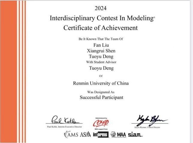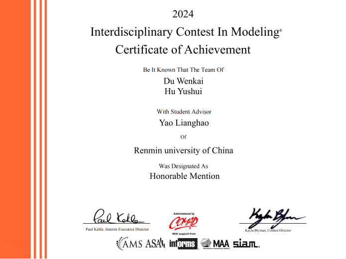 2024年度美国老员工数学建模竞赛获奖结果日前揭晓,太阳成tyc122cc集团学子斩获佳绩,7支队伍10名同学分别荣获特等奖(Outstanding Winner)、国际一等奖(Meritorious Winner)、国际二等奖(Honorable Mention)和成功参赛奖(Successful Participant)!
