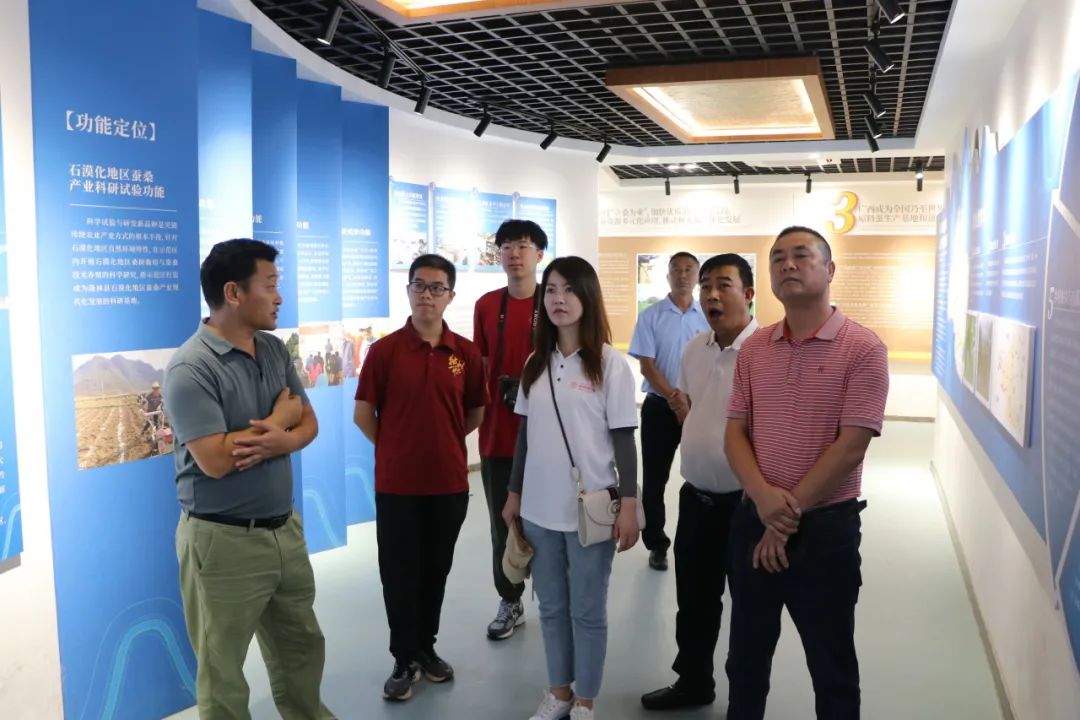 ▲调研团在石漠化蚕桑产业示范区考察调研