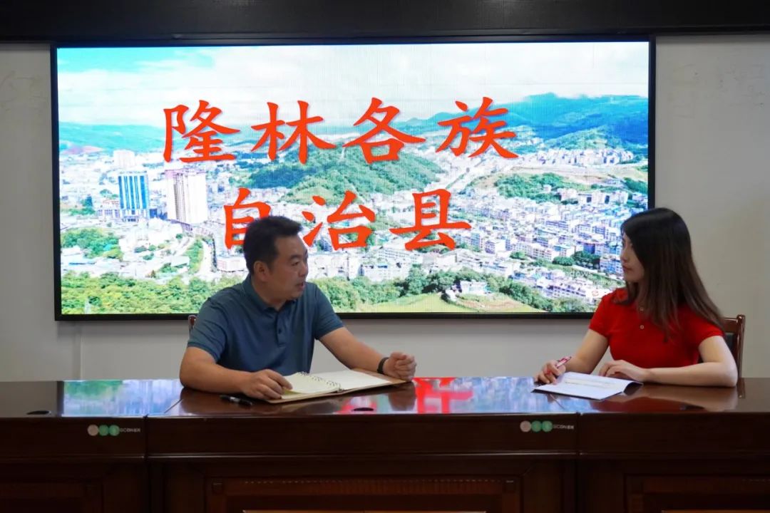 ▲梅应丹访谈隆林各族自治县政协党组副书记、副主席李锋