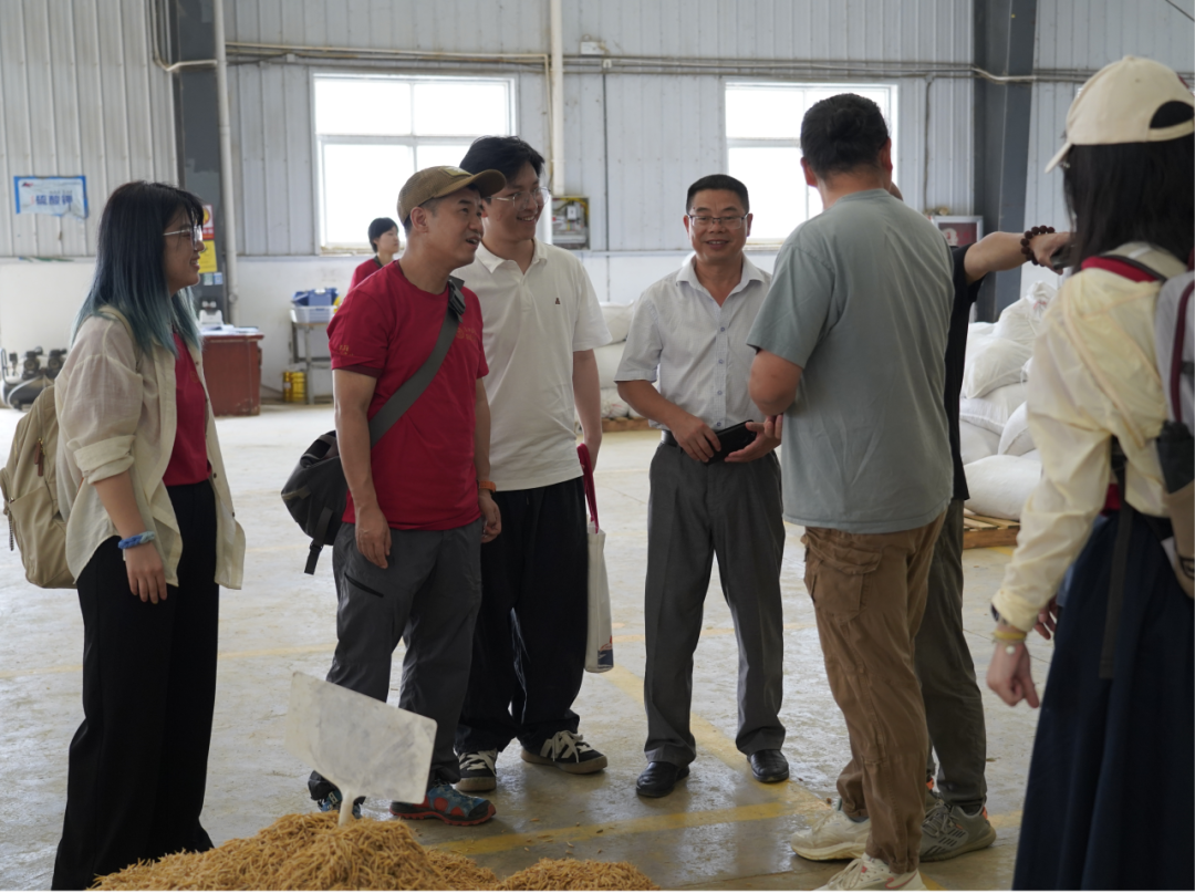 ▲访谈团在一碗水乡太子参交易市场加工车间内调研