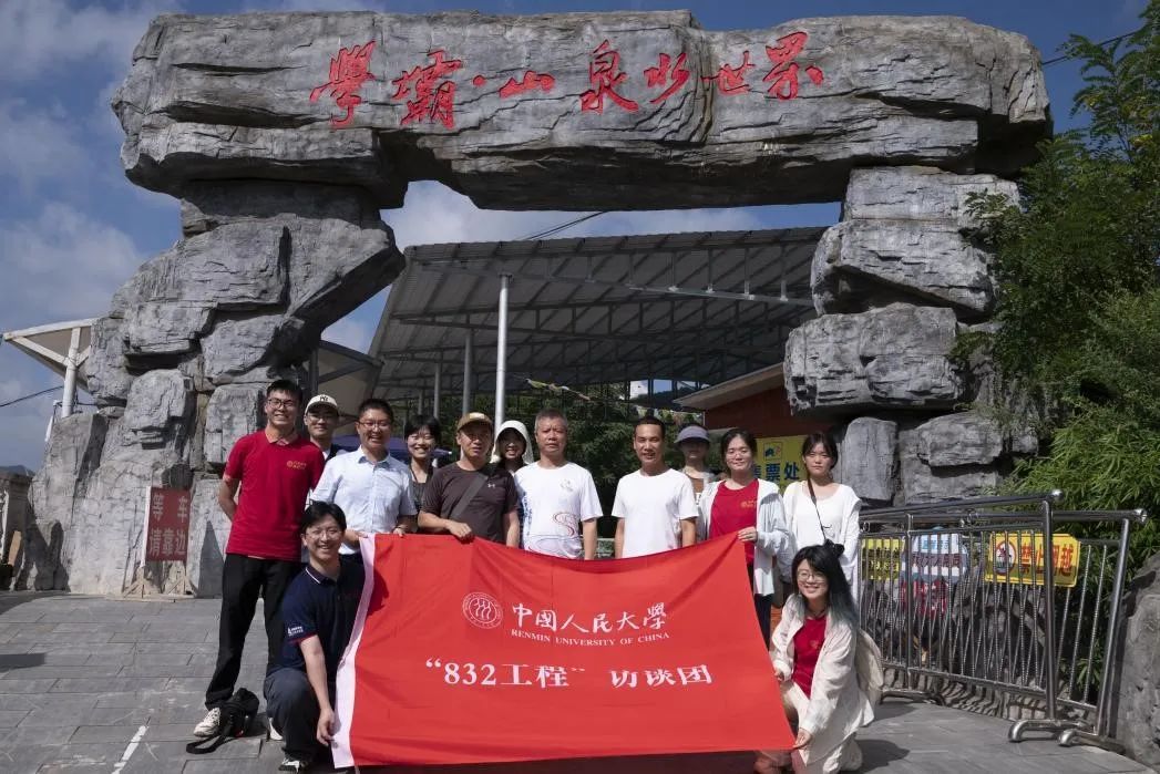 ▲访谈团在学坝村山泉水世界前合影