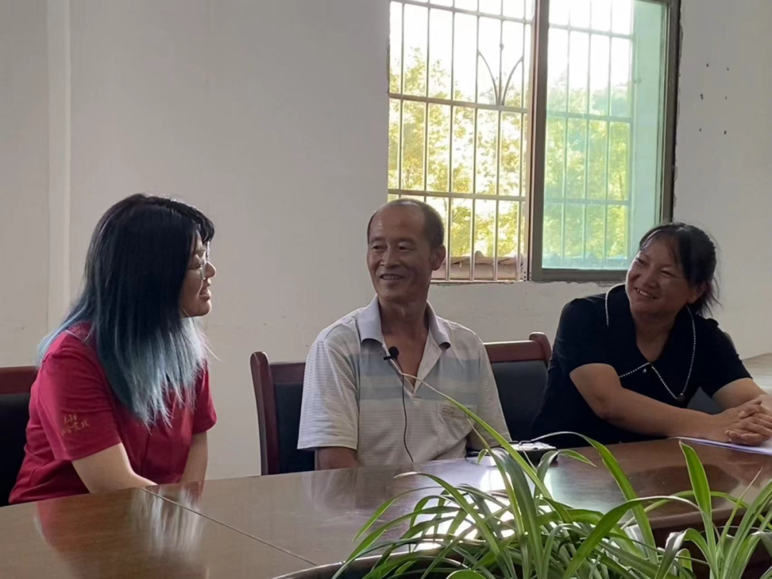 ▲访谈团博士生张佳佳在野洞河镇泥巴寨村委会办公室访谈脱贫户张大军