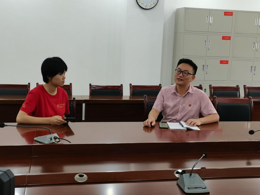 ▲访谈团本科生虞冠晴访谈黄平县重安镇党委副书记,脱贫攻坚期新州镇五里桥村驻村第一书记龙冠任