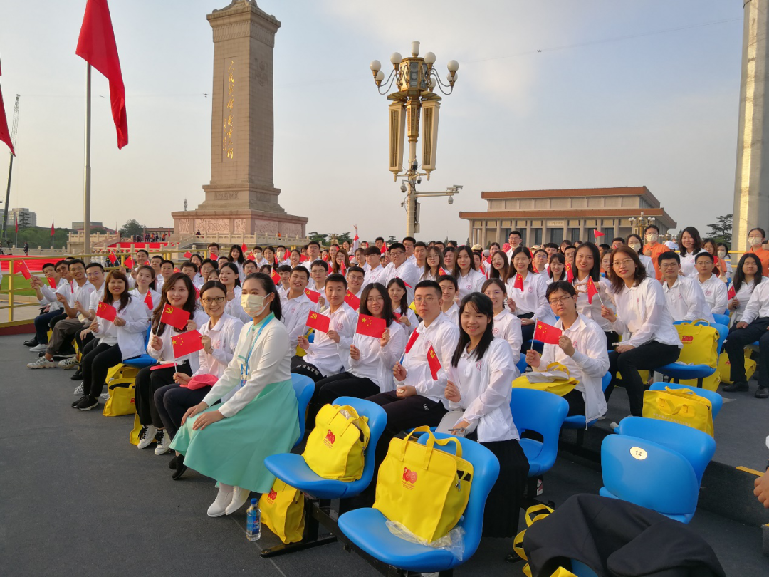 在天安门广场现场聆听学习习近平总书记发表的重要讲话,应经学子用歌声、欢呼声全情投入到盛典之中。