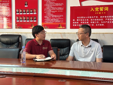 ▲博士生杨隆一访谈清涧县扶贫经济发展与开发信息监测中心任永杰