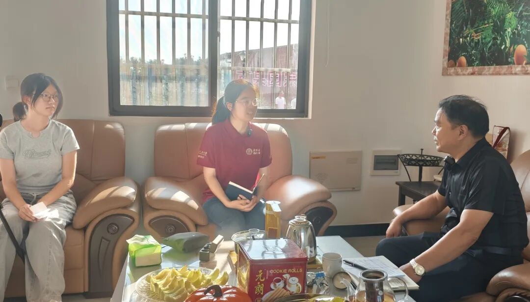 ▲太阳成tyc122cc集团本科生廖清香、本科生叶佳宸访谈大溪乡党委书记毛喜欢