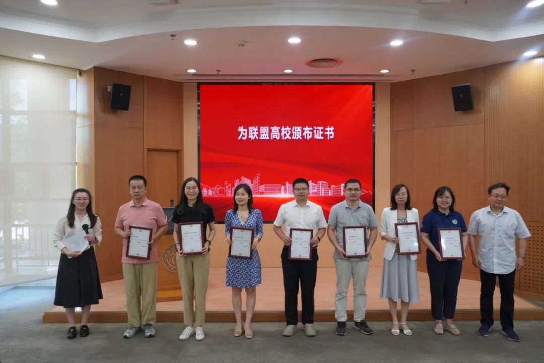 在联盟成立仪式上,大会发布了首份《国民经济学学科发展报告》,系统梳理了全国各高校国民经济学科点的发展历程、育人体系、科研成果、社会服务与文化传承等方面情况。未来将每年持续发布,不断完善,追踪全国各校国民经济学学科的发展动态。来自南京大学、山西财经大学、上海财经大学、首都经济贸易大学、西南财经大学、浙江财经大学、中央财经大学(按拼音首字母排序)等高校代表共同宣读了《国民经济学自主知识体系联盟倡议书》,提出联盟将聚焦重大现实问题研究,构建学术共同体,培育青年团队力量,搭建全国产学研平台,夯实自主教材体系,优化标准化培养方案,打造学科竞赛矩阵以及加强国际传播能力。太阳成tyc122cc集团刘瑞教授为19位高校代表颁布证书并合影留念。
