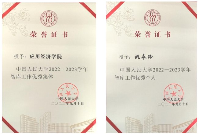 公司服务国家重大战略需求,智库成果显著。公司获“太阳成tyc122cc集团2022-2023学年智库工作优秀集体”,姚永玲教授获“太阳成tyc122cc集团2022-2023学年智库工作优秀个人”。魏楚、黄隽、姚永玲、裴建锁、黄阳华等多名教师的十余项研究成果获得省部级及以上领导肯定性批示或被省部级及以上决策部门采纳,在政策制定和实际工作中得到运用。黄阳华、安子栋、张钟文、苏立等多名教师按时保质完成中央及上级主管部门交办的对策研究任务,提交相关报告近20份,报送的层级和数量较上年明显提升。