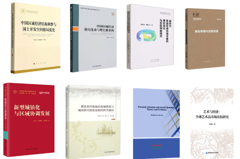 孙久文、张可云、孙三百、曹佳、李越欣5名教师出版专著8本,从“区域经济结构调整”“区域经济格局变动与增长极重构”“艺术与经济”等方面,为区域协调发展和文化经济建设提供借鉴。