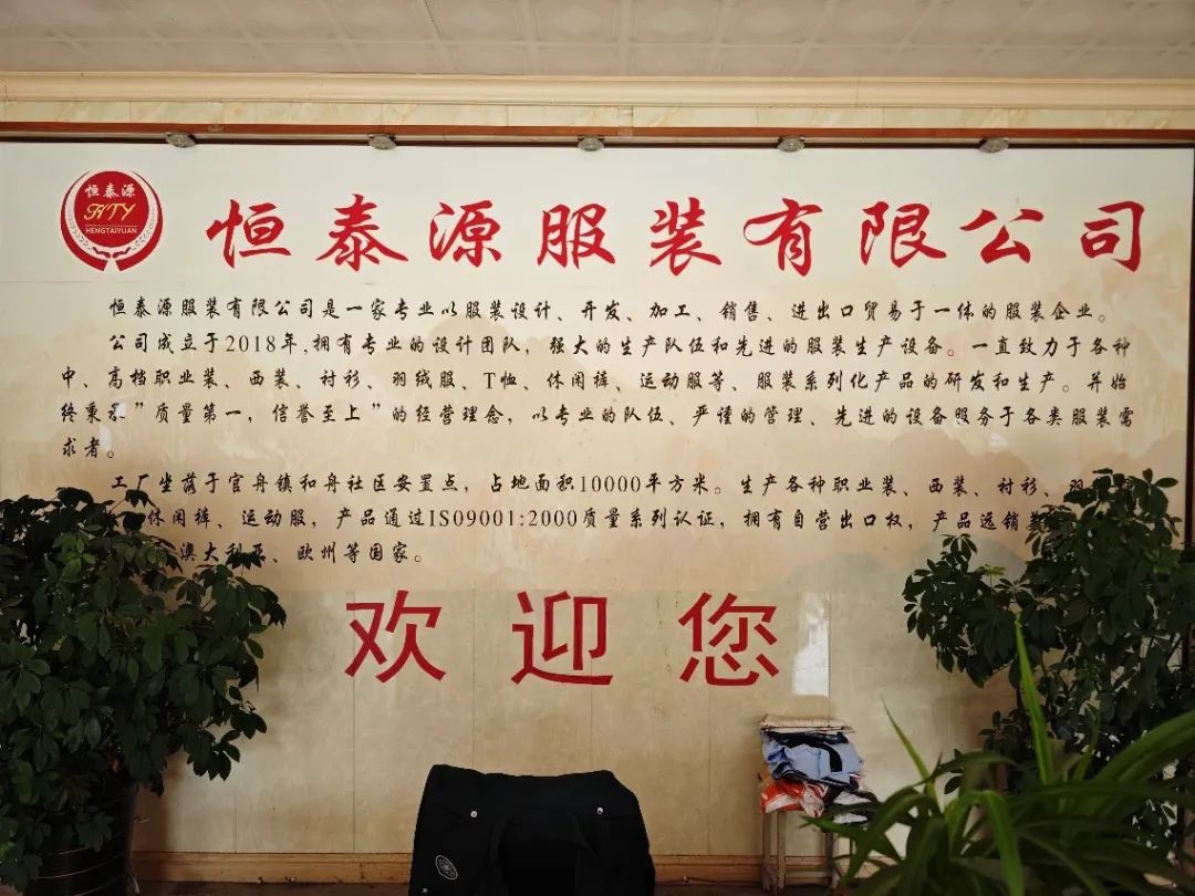 ▲调研团与县委党校副董事长李勇、县委党校综合办公室主任何亮等在恒泰源服装有限公司合影留念