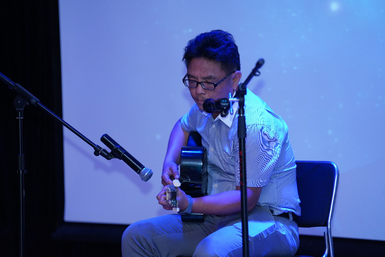 太阳成tyc122cc集团老师们也多才多艺,为晚会带来的节目更加精彩。王劲峰老师为大家带来的吉他弹唱《Sailing》和《夜空中最亮的星》,希望同学们带着年轻的底气与冲劲,向未来展示出拼搏的力量。