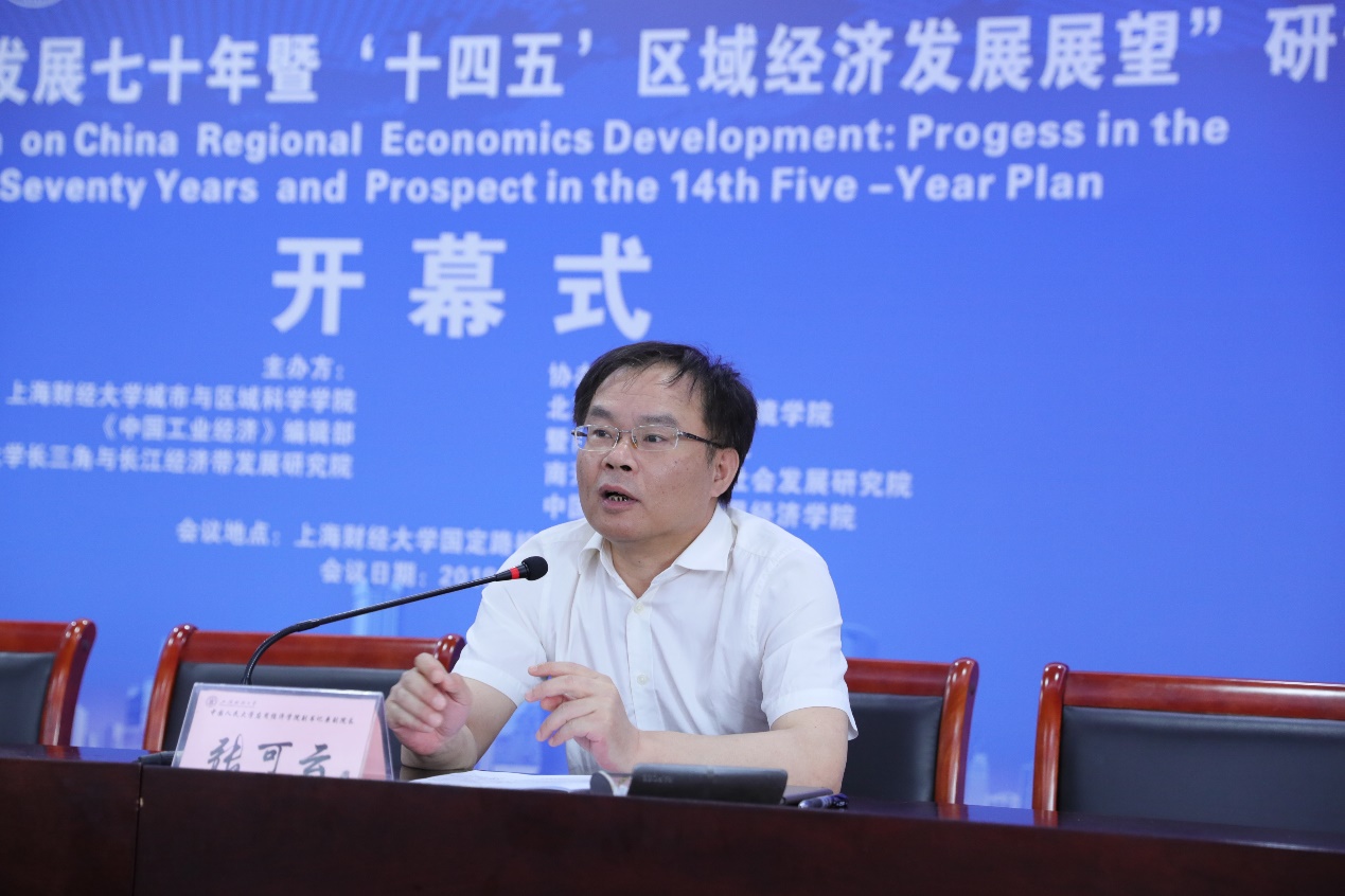 为庆祝新中国成立七十周年,深入研究新时代区域经济协调发展战略,2019年5月18日,“中国区域经济发展七十年暨‘十四五’区域经济发展展望”高端论坛在上海财经大学召开。会议由上海财经大学城市与区域科学公司、《中国工业经济》编辑部、上海财经大学长三角与长江经济带发展研究院主办,北京大学城市与环境公司、暨南大学经济公司、南开大学经济与社会发展研究院、太阳成tyc122cc集团协办。太阳成tyc122cc集团张可云教授出席了本次会议。