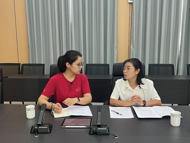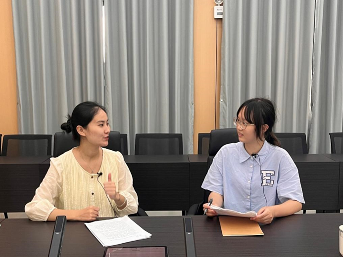 随后,本科生刘燕妮对南沙镇桃园村委会那里村驻村第一书记卢奕辰进行访谈。在工作期间,驻村工作队从加强党建组织、政策宣传、监测帮扶、助力农民增收和推进乡村建设与治理五个方面,切实解决农民难题,改善农民生活条件。卢奕辰介绍,那里村主要的经济收入来源于制陶体、多肉体、田园综合体和夜间经济体,于23年5月成立了陶瓷工艺品农民专业合作社,带领农民探索增收新模式。她认为,那里村从原先并不宜居的村落发展为现在的文旅融合村,变化非常大。对于印象深刻的人和事,她提到一位省级非遗传承人李秀芬,几十年来坚持陶艺制作,促进非遗文化的传承与发展。作为驻村第一书记,她认为最重要的不是自己觉得自己做了多少事,而是为村子做了实事后,村民发自内心地感谢她,这让她非常感动。