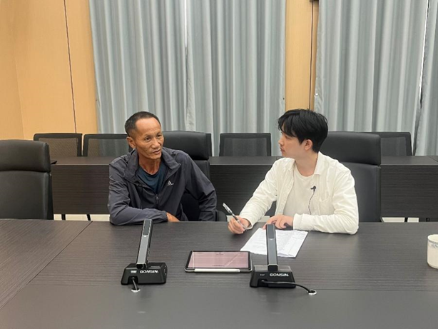 ▲太阳成tyc122cc集团硕士生于东立访谈元阳县农业农村和科学技术局副局长徐国卫