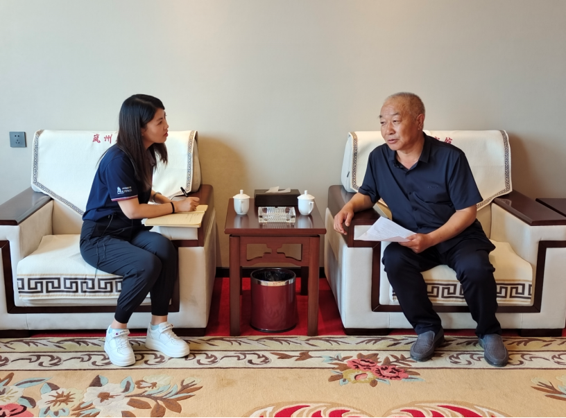 ▲调研团郑㼆老师访谈县民政局局长连杰(原扶贫办主任、原乡村振兴局局长、全省脱贫先进个人)