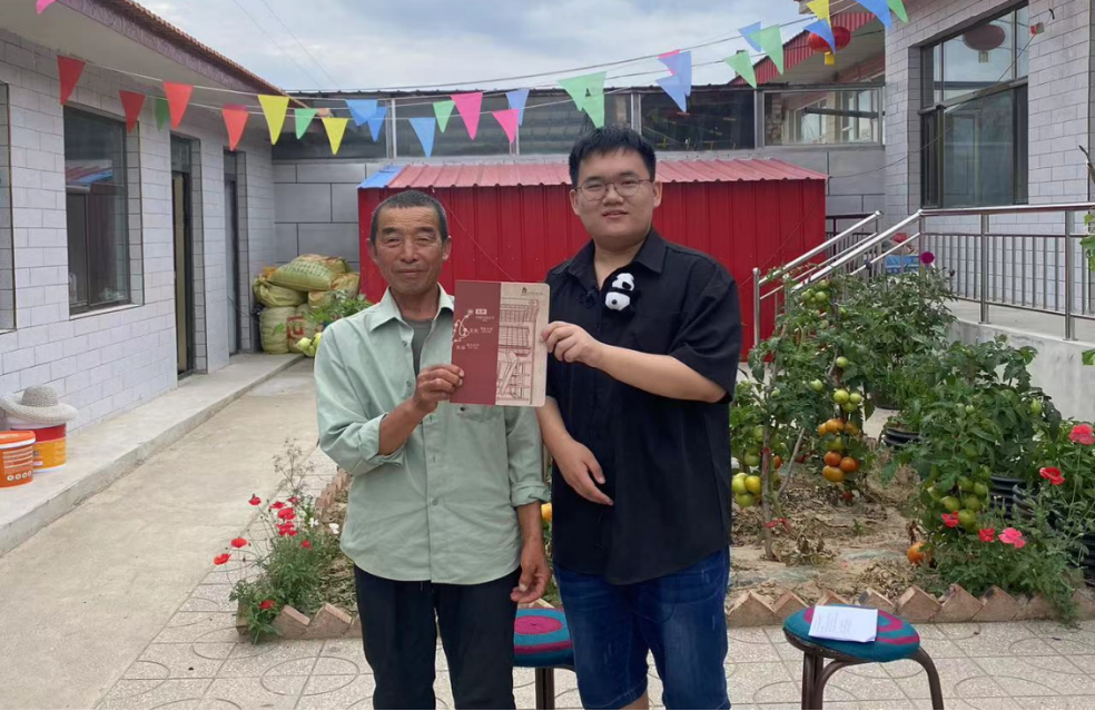 ▲本科生魏子轩同学和王家村脱贫户王全保合影
