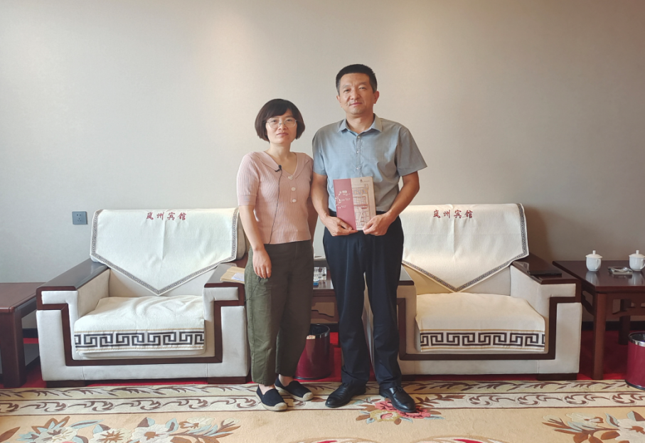 ▲调研团吕媛媛老师和普明镇党委书记李兴旺合影