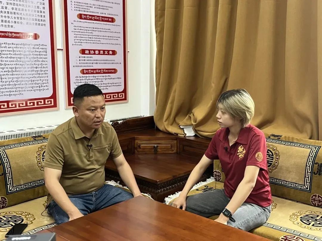 ▲西藏大学经济与管理公司硕士生任文丽访谈原乡村振兴局局长索朗加措