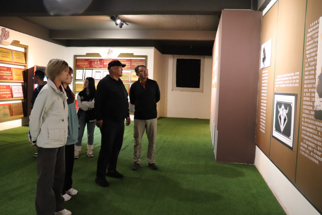 ▲访谈团在阿古藏戏传统手工艺合作社调研