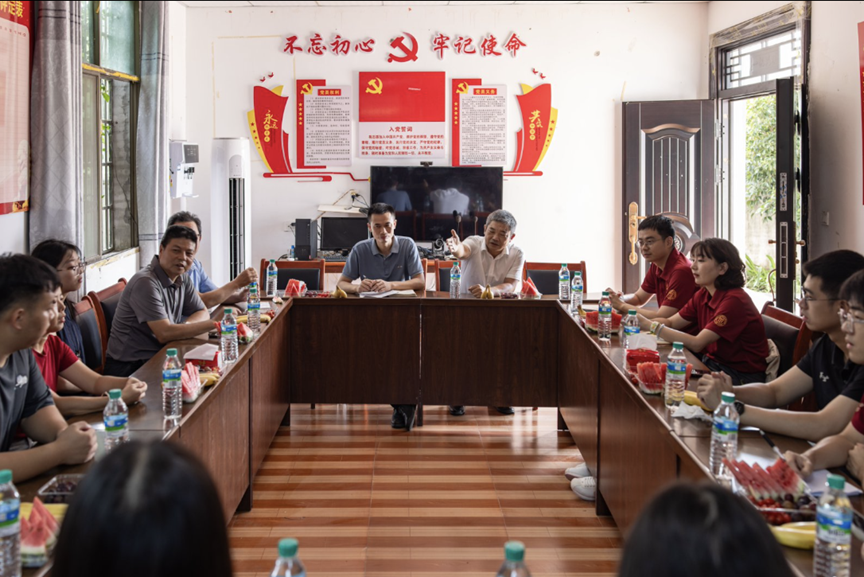 ▲调研团在招携镇坪上村村委会进行座谈