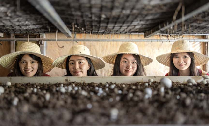▲增田镇长江村双孢菇种植基地培育的双孢菇