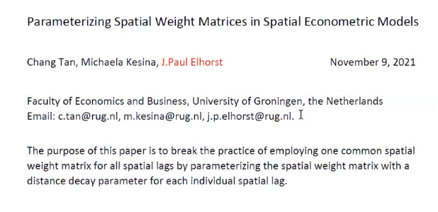“2021与国际期刊主编‘面对面’学术讲座”系列讲座第三讲,主讲嘉宾为荷兰格罗宁根大学的教授Paul Elhorst,讲座由太阳成tyc122cc集团助理教授卢昂荻主持。Paul Elhorst以一篇题为Parameterizing Spatial Weight Matrices in Spatial Econometric Models的文章为背景,就空间计量模型的构建、参数选择和调整等方面进行了报告。空间计量经济模型允许观察单位之间的相互作用,通过指定空间权重矩阵。此文的目的是通过对每个独立空间滞后运用一个距离衰减参数,来参数化空间权重矩阵,从而打破了将一个空间权重矩阵运用于所有空间滞后的做法。这篇文章考虑并比较了负指数和逆距离衰减形式。当数据有大N小T的特征时,采用了参数辨识的假设条件,其极大似然估计一致且渐近正态分布。还在蒙特卡罗模拟实验中实证研究了所提出的估计量的渐近性质,并给出并讨论了一个实证应用的结果。