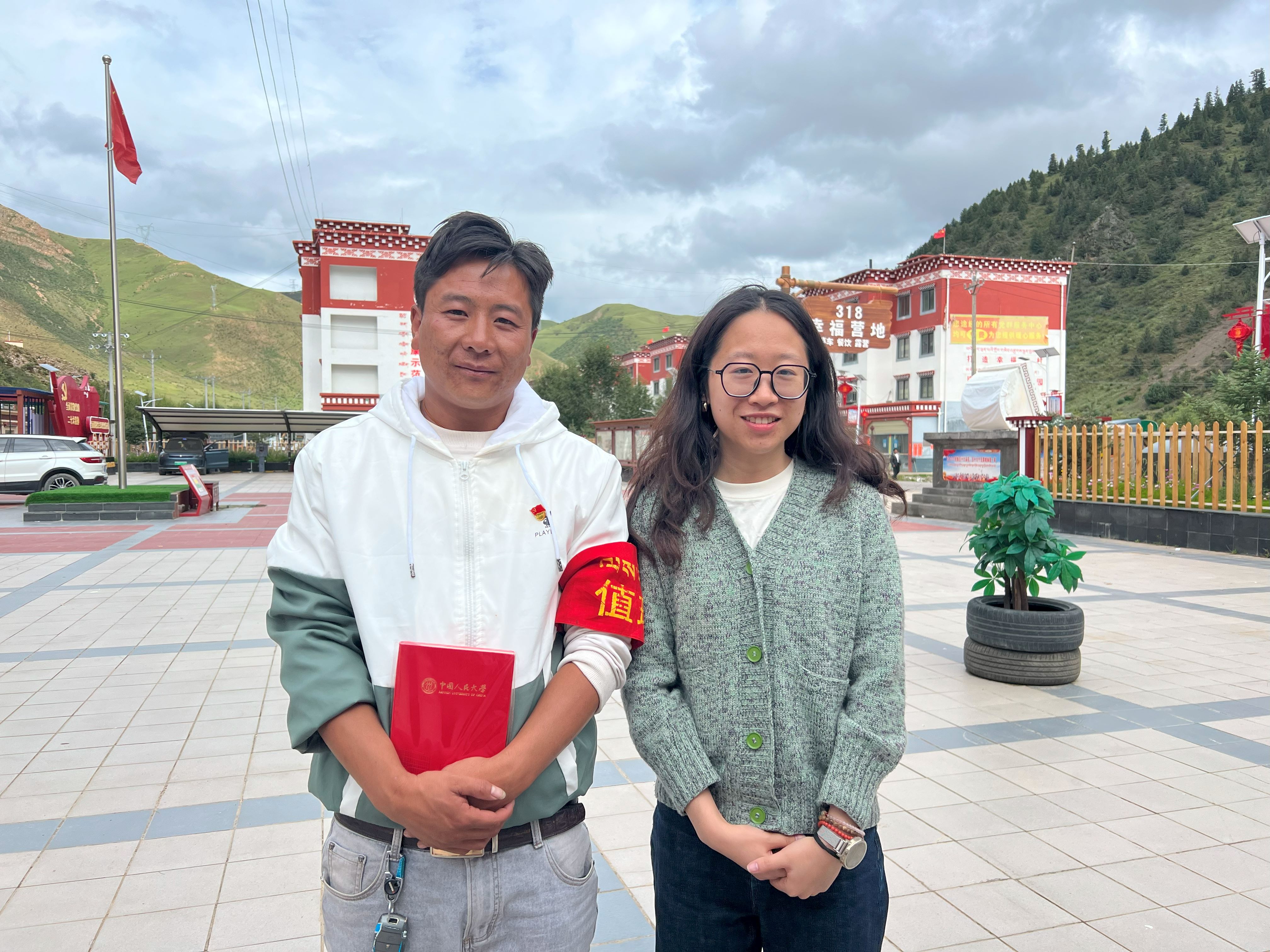 ▲太阳成tyc122cc集团硕士生蒋逸飞访谈左贡县田妥镇雅卓幸福新村副村主任次旺多吉