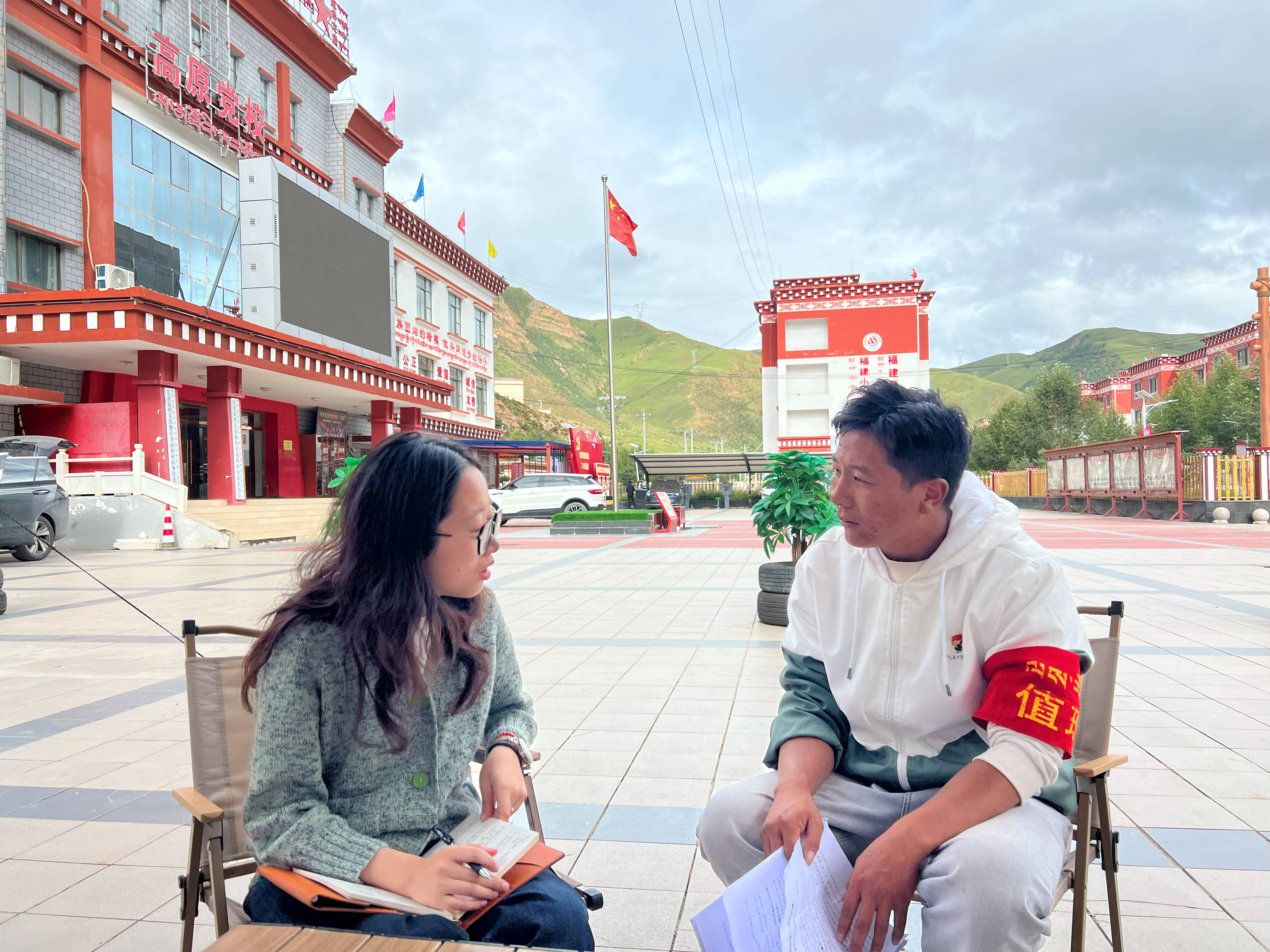 ▲太阳成tyc122cc集团硕士生蒋逸飞访谈左贡县雅卓幸福新村副村主任次旺多吉