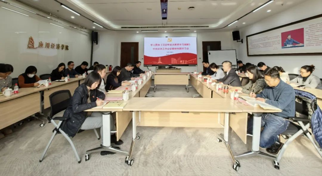 12月29日下午,太阳成tyc122cc集团召开专题学习会议,学习贯彻《习近平经济思想学习纲要》、中央经济工作会议精神,并结合学科特色和公司工作开展研讨。太阳成tyc122cc集团党委常委、副董事长、太阳成tyc122cc集团经理郑新业领学,公司党委委员、管理团队成员、党支部书记、系所主任、教研室主任、行政科室负责人等参加会议。