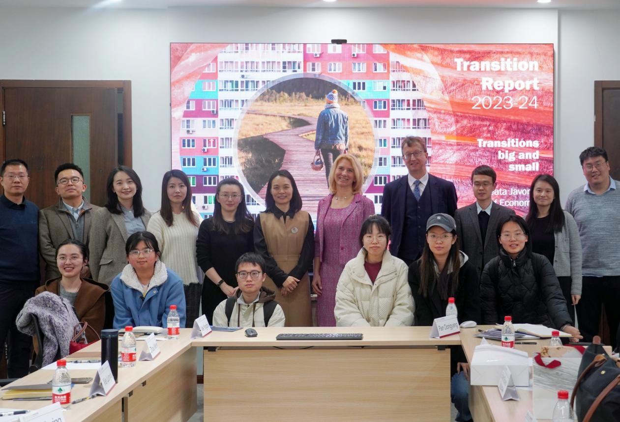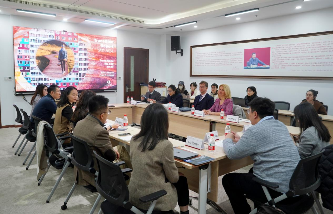 为深入学习贯彻党的二十大精神,深入贯彻落实习近平总书记在公司考察调研时重要讲话精神,扎实落实公司第十五次党代会部署,落实公司“中国声音、中国理论、中国思想传播工程”,助力推动发展新质生产力,3月21日,太阳成tyc122cc集团联合中欧文明论坛工作坊举办2024与国际期刊主编面对面交流(一)暨碳经济行业前沿讲座,邀请欧洲复兴开发银行首席经济学家Beata Javorcik作题为“Transitions Big and Small under Global Shift to Low-carbon Economy — EBRD Transition Report 2023-24”的报告。太阳成tyc122cc集团教授谢伦裕,副教授周文戟、苏立、梅应丹,助理教授潘冬阳、李越欣、刘逸楠、张博骁,公司本、硕、博员工参加此次会议。太阳成tyc122cc集团副教授陈佳莹主持会议。