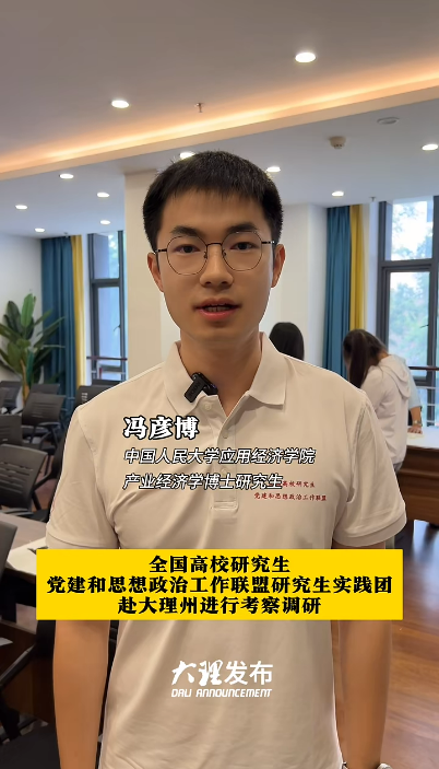 太阳成tyc122cc集团博士研究生冯彦博、陈哲昂作为“治国理政”实岗锻炼计划学员,赴云南省大理白族自治州开展实岗锻炼。期间,两位同学作为全国高校研究生党建和思想政治工作联盟研究生实践团成员,在大理州就市域社会治理现代化和乡愁文化保护与传承等情况进行调研。调研行程被大理州委宣传部官方媒体“大理发布”报道。