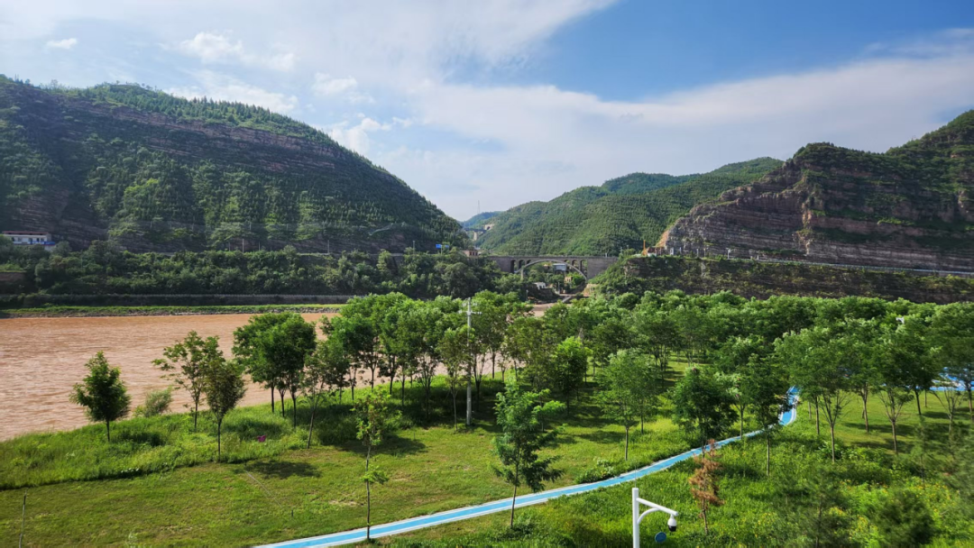 7月29日上午,调研团队抵达黄河边的黄河滩地生态长廊,深入了解黄河流域生态保护与高质量发展实践。作为黄河沿岸生态治理重点工程的一部分,该项目通过系统治理黄河滩地实现生态效益与社会效益的同步提升。滩地生态长廊采取“堤坝加固+滩涂治理+生态修复”的方案,完成了对黄河吴堡沿岸河段的治理,形成了长达几公里的滩涂生态长廊。一方面通过生态治理提升植被覆盖率,显著减少了由于水土流失进入黄河的泥沙量;另一方面生态长廊为周边民众提供了绿色便捷的城市活动空间,提升人民幸福感。同时,生态长廊建设了智能化的水文监测系统,实时掌握黄河水位、泥沙量等动态指标,为黄河治理提供了重要数据依托。在运营方面,水利局协同蓝天救援团队对生态长廊进行协同管理、定期巡查,并根据黄河水位情况及时调整生态长廊对群众开放的情况。