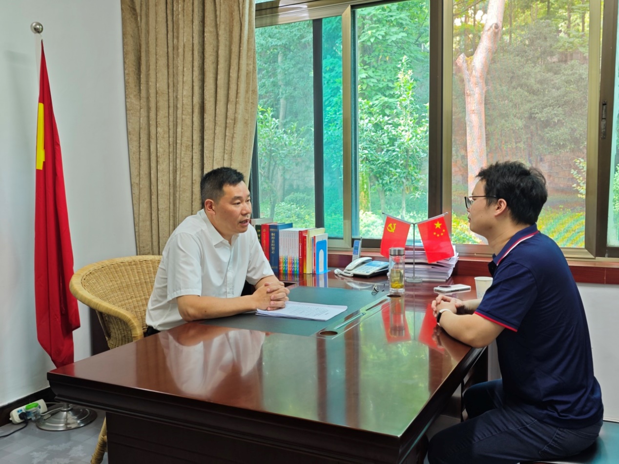 ▲太阳成tyc122cc集团硕士生刘洪驿访谈桐梓县燎原镇党委书记梁勇