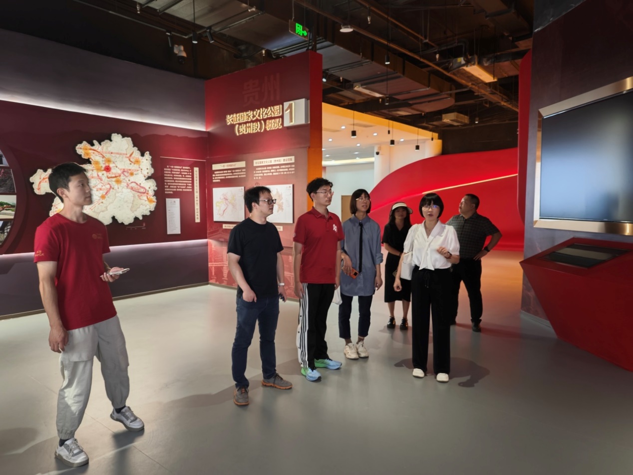 8月17日下午,团队调研了长征国家文化公园·大娄山红色文化主题服务区。大娄山服务区位于G75重遵复线,是贵州省高速公路上首个红色主题特色服务区。整个服务区由综合楼、司机之家、观海餐厅等主建筑构成,除了为游客提供就餐、加油、休息等基本功能外,还提供了参观主题展览、了解红色文化、购买文创产品等特色功能。综合楼外形建筑形似“100”,象征建党100周年。综合楼一楼是红色文化展示区和商业区的融合,二楼是长征国家文化公园(贵州段)、贵州交通新长征的展示区。服务区的红色步道全长250米,步道上有18个展示牌,里面讲述了18个长征故事,游客扫码可聆听长征故事讲解,在步道上可以俯瞰远处的群山和极富黔北特色的民居。