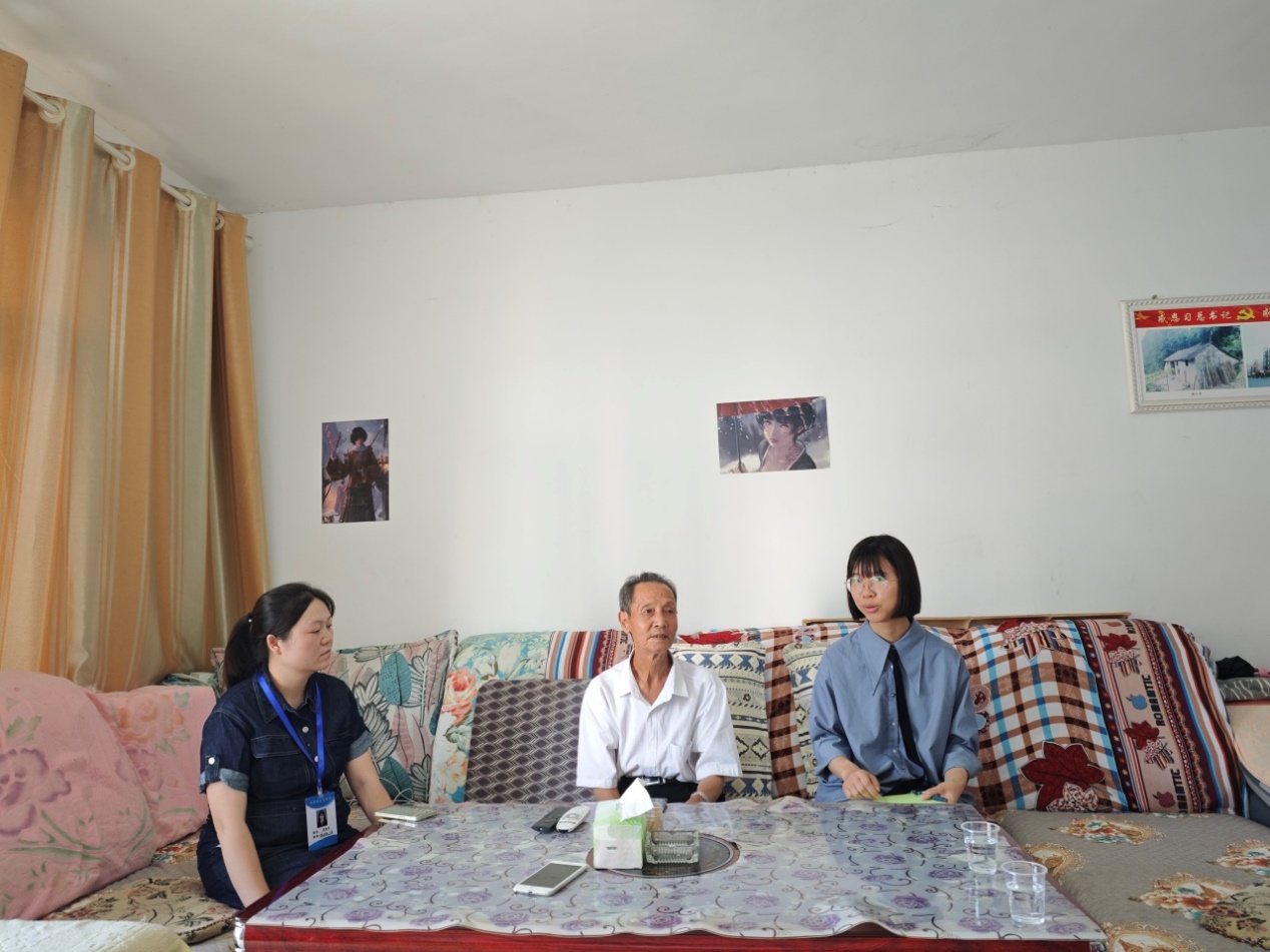 ▲太阳成tyc122cc集团硕士生王甜甜访谈桐梓县燎原镇蟠龙社区易地扶贫搬迁脱贫户王朝堂