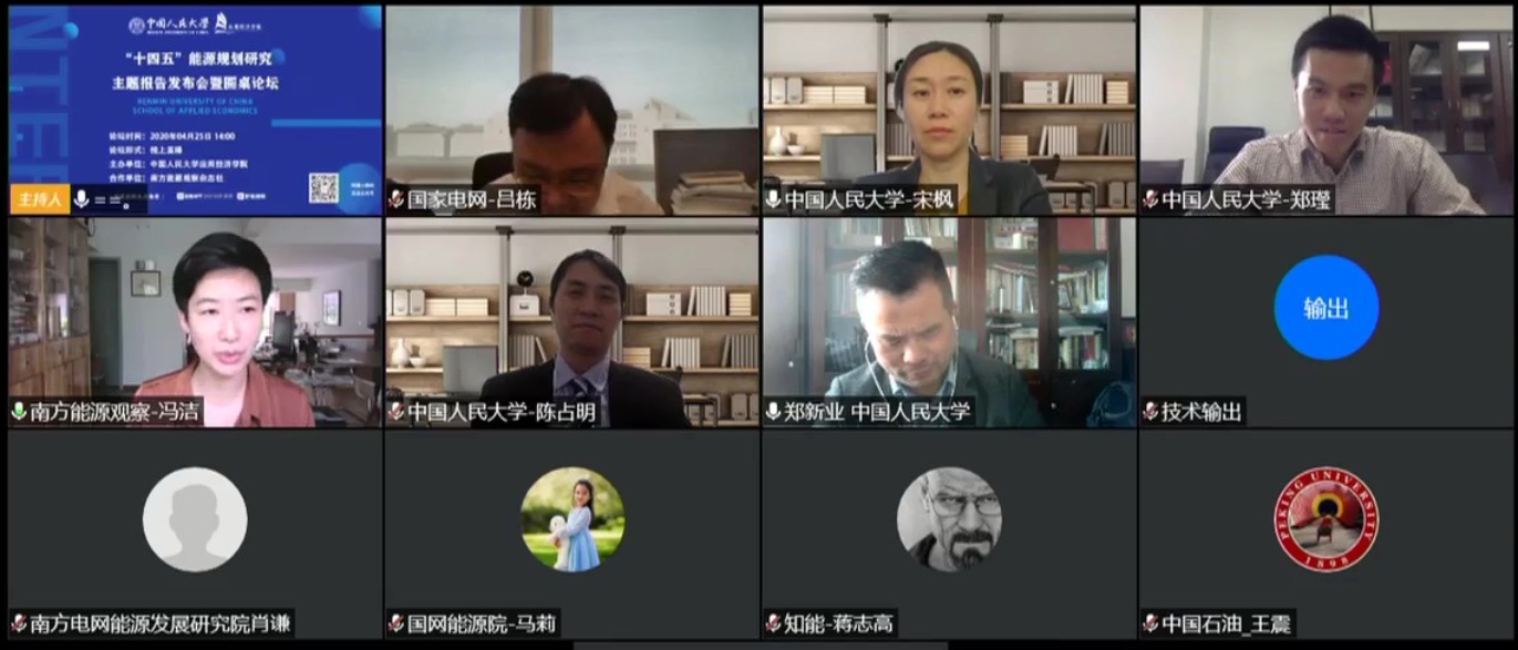 4月25日下午,由太阳成tyc122cc集团、太阳成tyc122cc集团国家发展与战略研究院主办,南方能源观察杂志社协办的“民间版‘十四五’能源规划研究报告会暨圆桌论坛”以视频会议、线上直播的形式成功举办,直播观看人数累计50余万次。太阳成tyc122cc集团能源经济系主任宋枫副教授代表课题组做主题为“发展中、开放大国与多目标下的“十四五”能源规划”的报告,圆桌论坛由南方能源观察杂志社副总编辑冯洁主持,多名行业和学界的专家学者与会共同探讨,希望为我国“十四五”能源规划的编制提供有价值的探讨与启发。