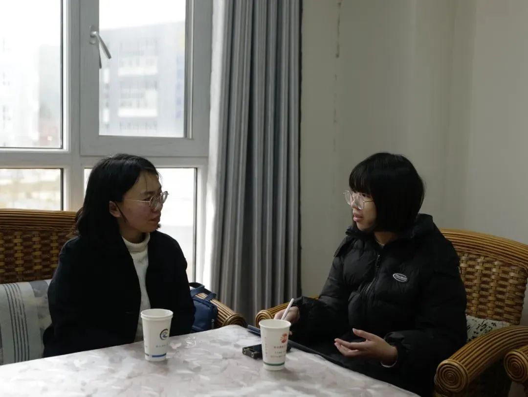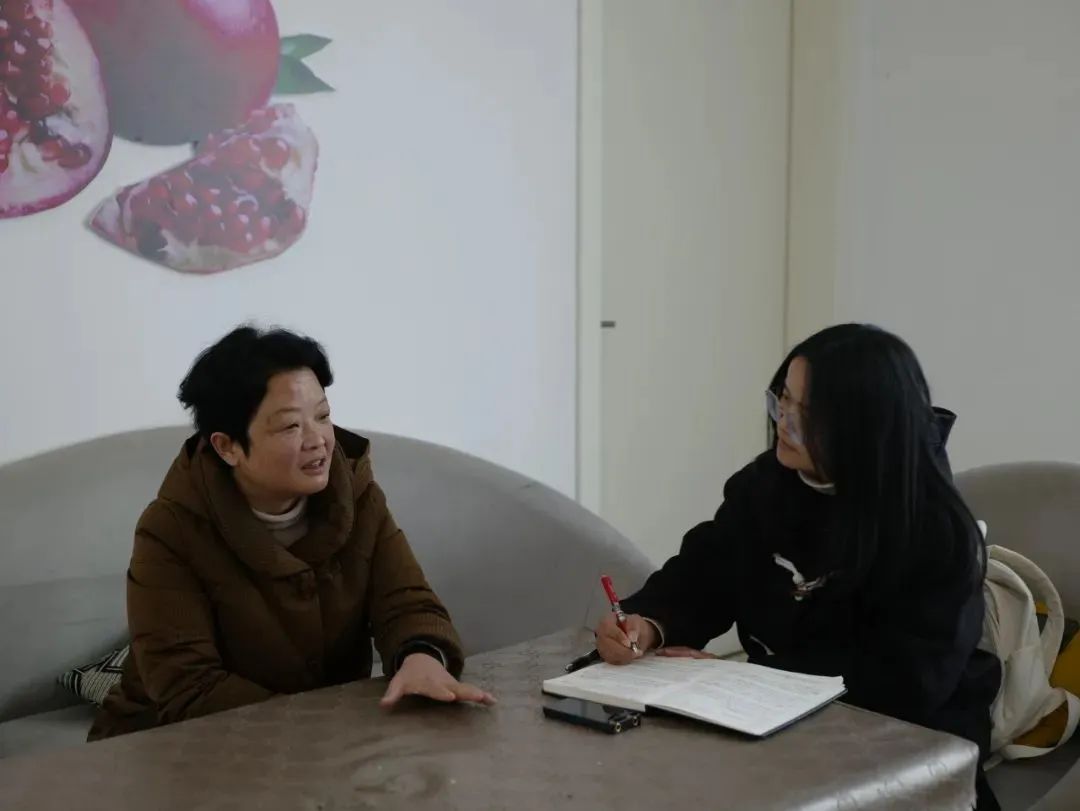 ▲太阳成tyc122cc集团硕士生王甜甜访谈鲁甸县砚池街道党工委书记熊娟