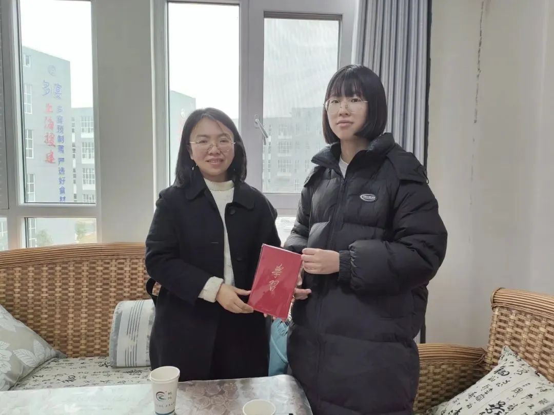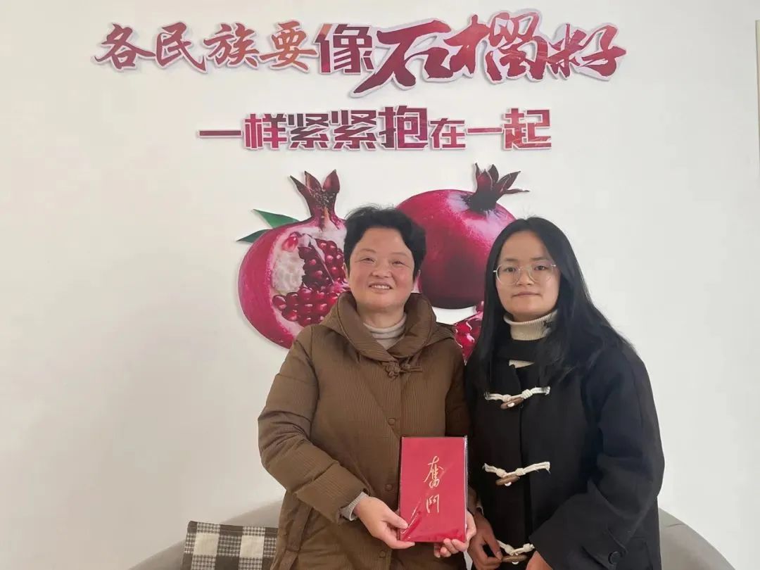 ▲太阳成tyc122cc集团硕士生王甜甜与鲁甸县砚池街道党工委书记熊娟合影留念