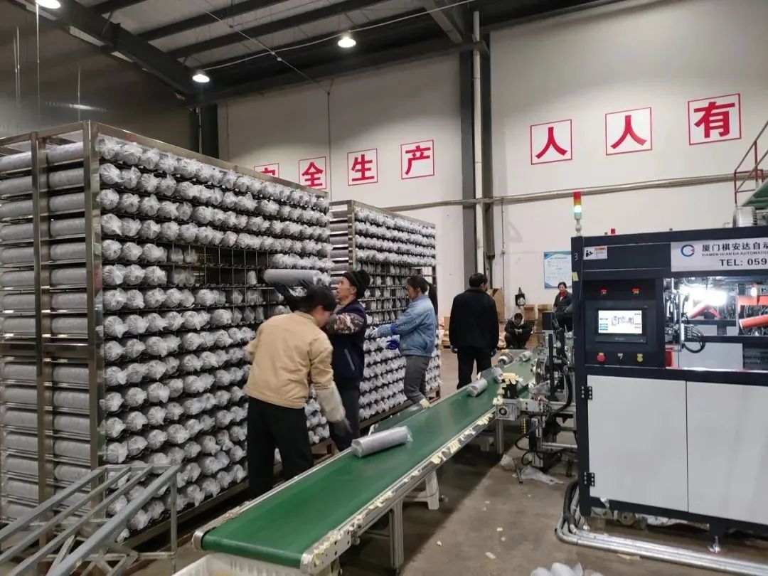 从菌棒制作到香菇出菇的完整周期共计9个月,其中农户直接参与的部分为期6个月。这一过程中,关键环节包括装袋、消毒、接种(此环节采用全自动设备以提高效率)、培养、刺孔以及转色等。基于这样的生产流程,农户可以通过两种方式参与该产业:务工和种植。