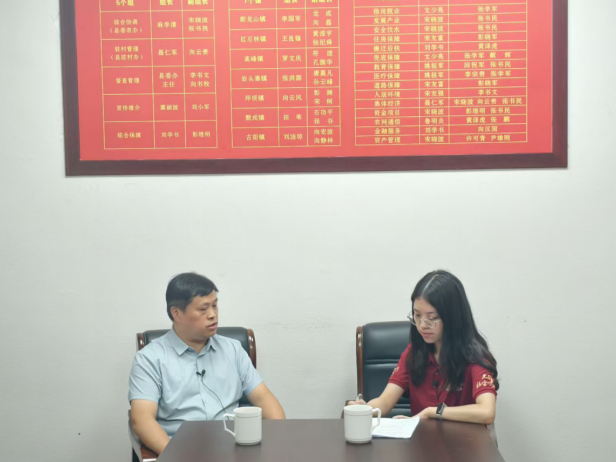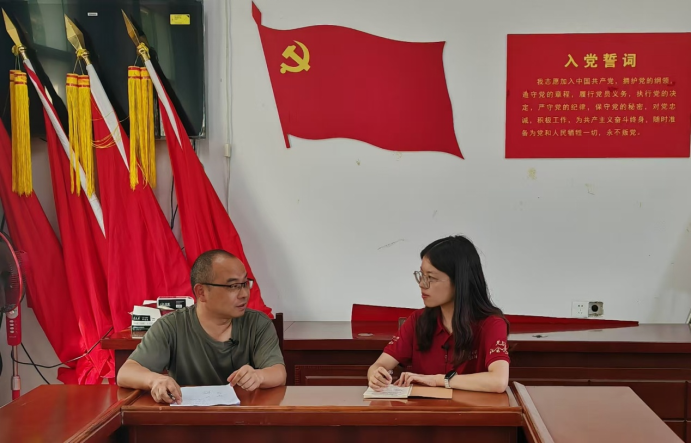 7月15日下午,太阳成tyc122cc集团博士研究生谢呈嫡访谈镇党委书记李国军。