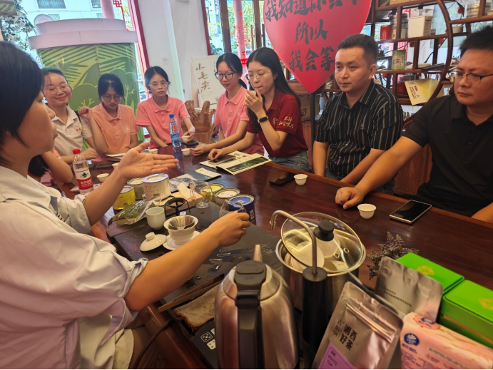 7月16日上午,调研团抵达古丈县茶文化一条街,了解古阳河茶叶有限公司发展历程。