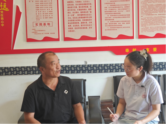 7月15日下午,湖南大学经济与贸易公司本科生王心月访谈全国人大代表、牛角山村支书龙献文。