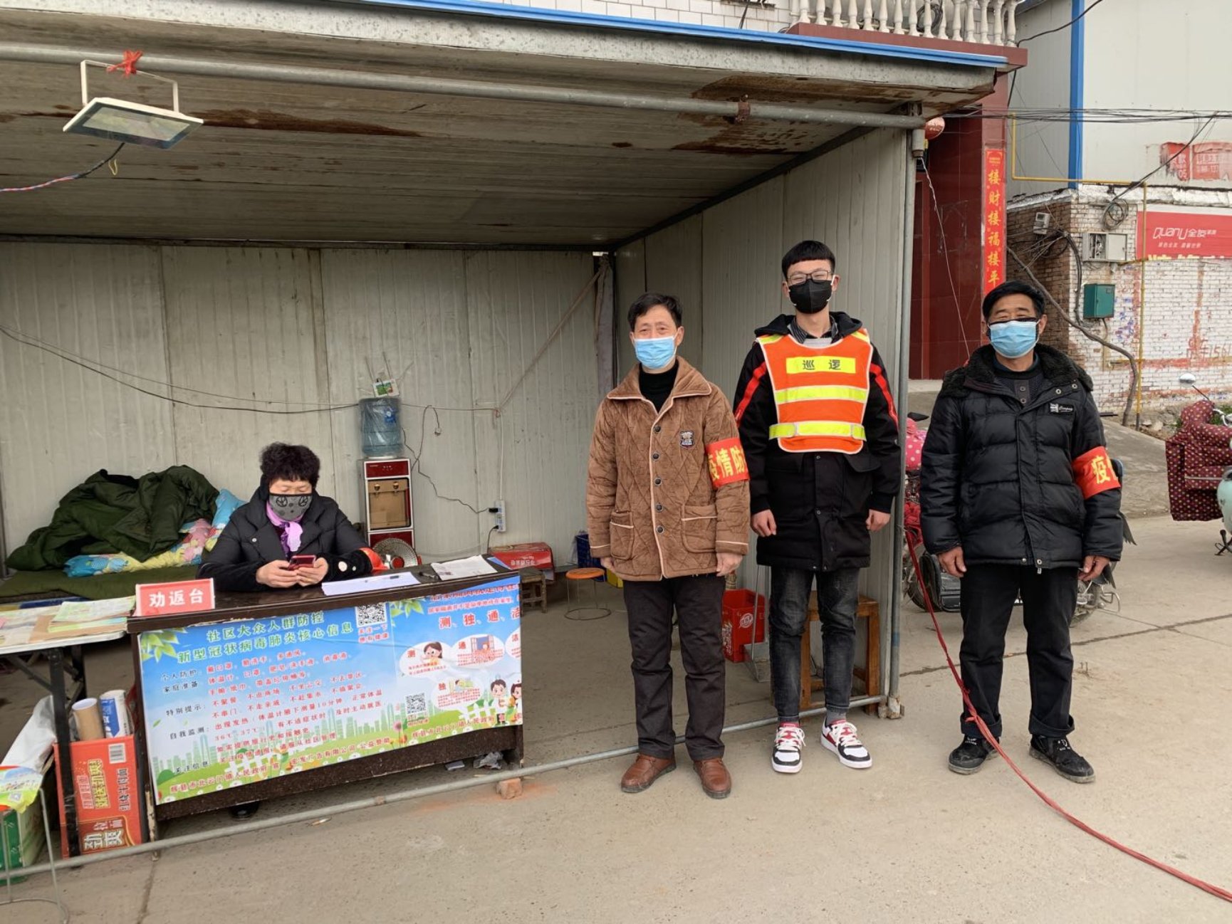 切身的体验了基层防疫人员的工作之后,才能真正明白他们有多辛苦,多伟大。之前每天只是在手机上关注着疫情的最新情况以及一线人员的冲锋陷阵,如今真正到了一线才有更深刻的体会。村庄的其他道路已被堵死,只剩这一条必经之路,人流量也是相对较大的。询问每一个行人,测量体温,给每一辆车消毒,作好记录,这是一项十分枯燥的工作。由于设备比较简陋,只是拉了一根绳子阻挡行人,如果不注意的话就会有人趁机溜进去。因此这项工作又十分费神。但如果我们的工作有失职,那将是对全村人民健康的不负责任。有时工作人员会站整整一个下午,偶尔喝口水,闲聊几句,便又投入到紧张的工作中。第一天我便忙了五个小时,有一点累但是十分值得。