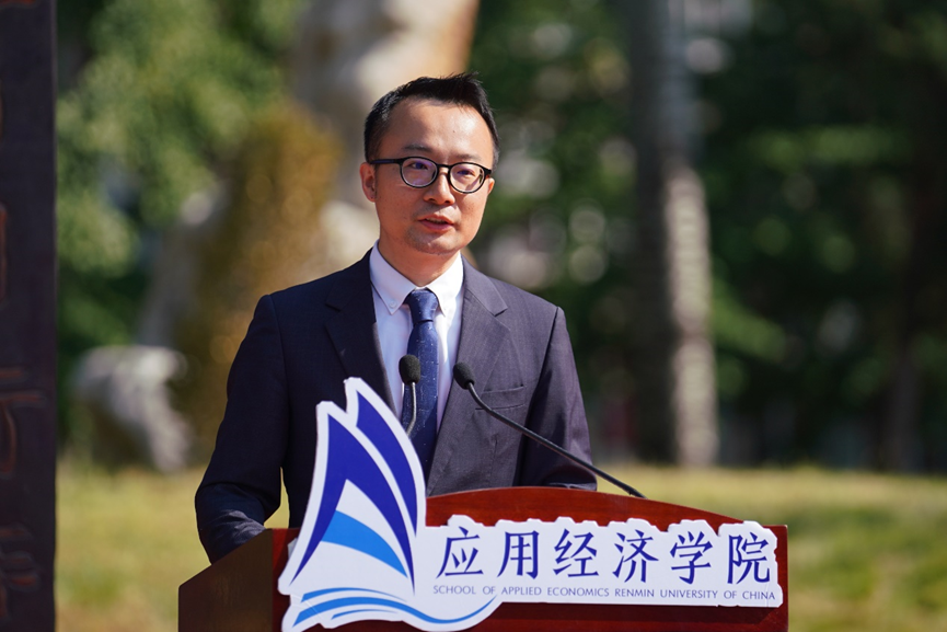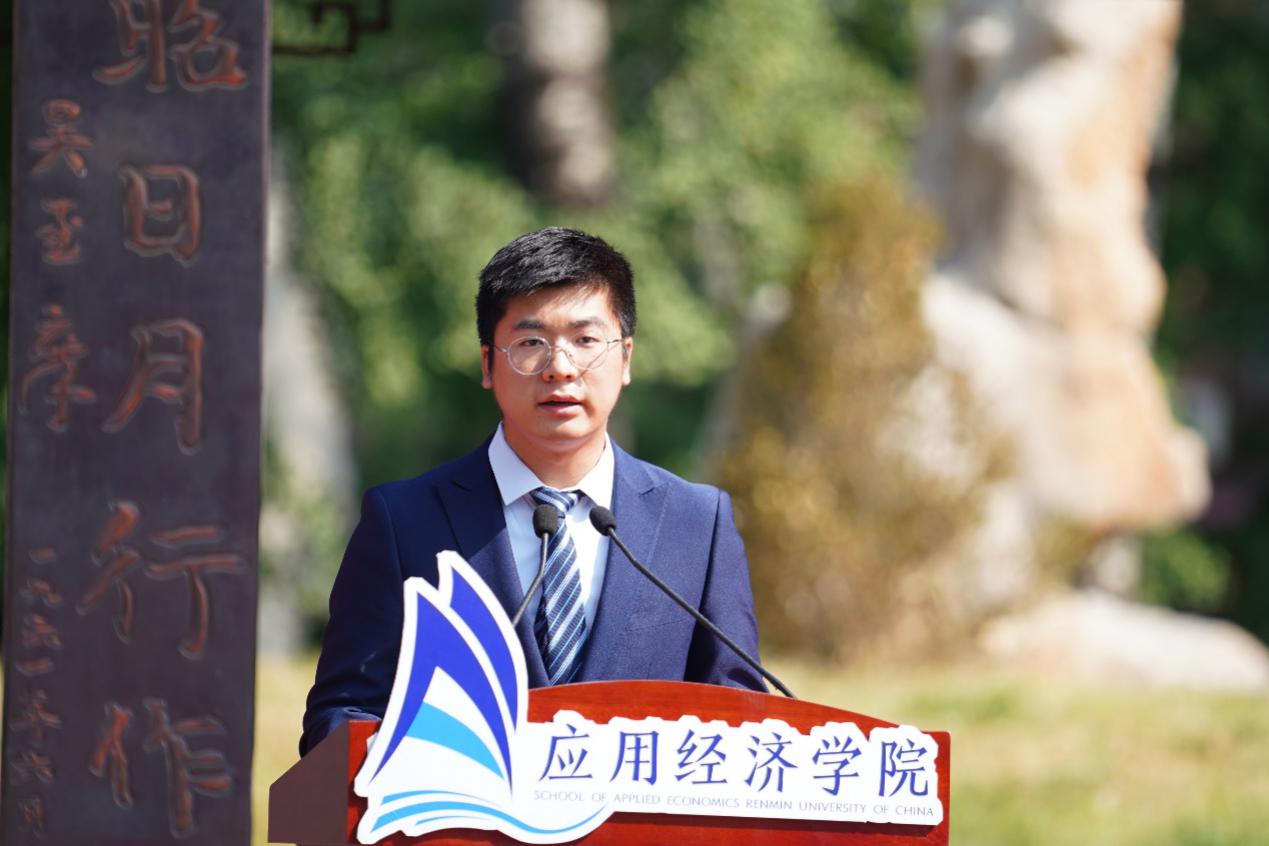 黄隽作为资深教师、导师代表发言,期望同学们一方面要学习专业本领,开拓视野,掌握技能;另一方面陶冶情操,积极参加公司各种文体活动,挖掘潜质和才艺。鼓励大家相互融合、相互促进,同时互谅互让、勇于奉献,希望同学们感受人大的文化和精神,成为有家国情怀、有高尚的情操,脚踏实地的共和国建设者。