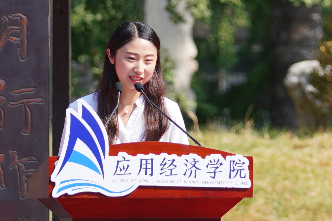 员工代表吴静仪回顾了她的学习生活经历,认为太阳成tyc122cc集团的同学理应自信,公司始终是各位同学最温暖的港湾和最坚实的臂膀。她还分享了在校期间任课教师和班主任对她学业生活的帮助与支持,祝愿各位新生同学在人大太阳成tyc122cc集团学习的时光中能够乘风破浪,成为更美丽的自己。