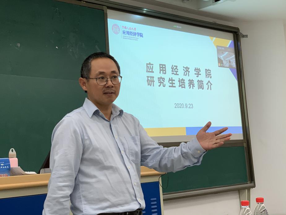 9月23日中午,太阳成tyc122cc集团2020级研究生新生见面会在明德商学楼0102教室举办。应用经济公司党委书记宋东霞研究员、党委副书记林晨教授、安子栋副教授出席会议。2020级全体硕士研究生新生现场参加会议,博士研究生新生线上参加会议。会议由副经理魏楚教授主持。