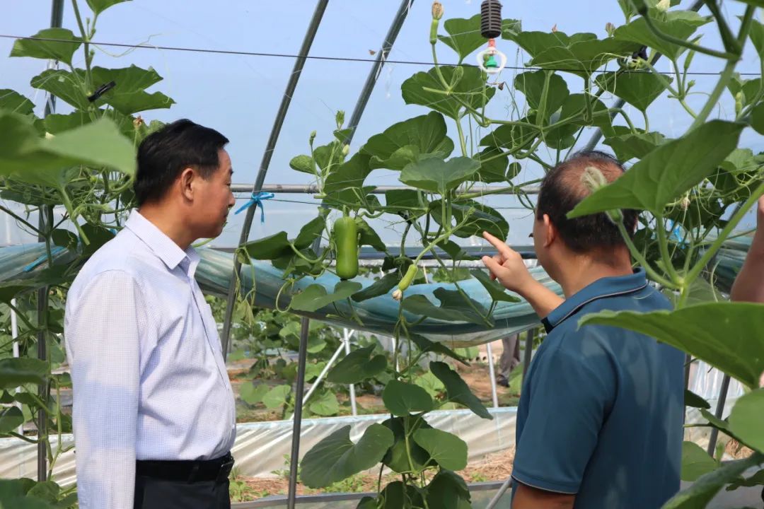 随后,调研团从春秋乡前往五显镇上河村,实地参访了三月畈现代农业示范园。该园区依托优越的资源禀赋条件,一是距河流较近,水源充足且优质;二是交通便利,距主要市场合肥市仅有两小时车程。由县扶贫专项财政资金支持,产业园区分三期建成,建设有现代化农业基础设施,包括引水工程、高标准大棚、水肥一体化设备、灌溉设备等。在完备的产业设施基础上,村集体引进村外企业家组织生产销售,农户在企业中务工,企业每年上缴集体部分利润,探索出“集体+公司+农户”的经营模式。这一模式既充分利用成熟企业家的战略经验、销售渠道和专业技术,又保障产业发展惠及村集体和全体村民。产业园每年能收获三茬蔬菜,年产量可达400吨,经济效益良好,未来还将进一步扩大规模。